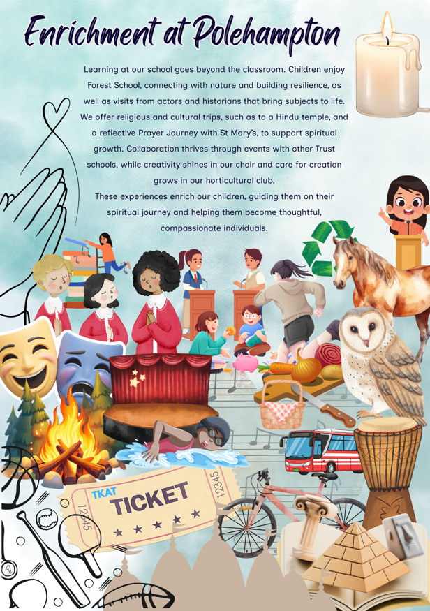 Our trips and visitors are designed to enrich learning and connect with the topics children are exploring in class. These experiences spark curiosity, deepen understanding, and create lasting memories; bringing classroom learning to life in exciting and meaningful ways. This is not an exhaustive list; some of the enrichment activities can be seen in the graphic below - this gives a snapshot of what we have to offer!